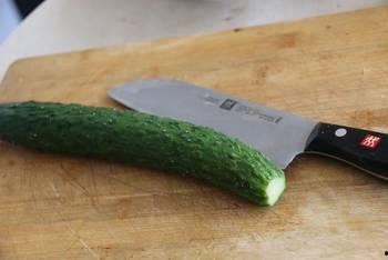 2. 切法:切瓜的时候,要顺着瓜的纹理切,这样切出来的瓜片既美观又容易入味。